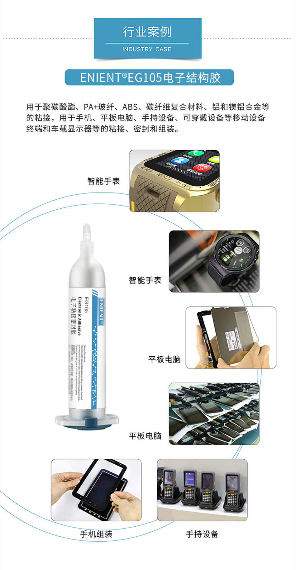 PRODUCT CENTERABS在我們的生活中很常見,它是一種無定形熱塑性材料,具有多種性能,因此也適用于多個行業(yè)。當今電子產(chǎn)品的需求不斷增加,ABS性能高,重量輕,已經(jīng)成為了制作電子外殼的重要材料,而這個多功能材料還需要一個好搭檔讓它跟電子材料粘接,在小編看來,最適合ABS外殼的搭檔就是ENIENT EG105新型堅韌皮膜膠。