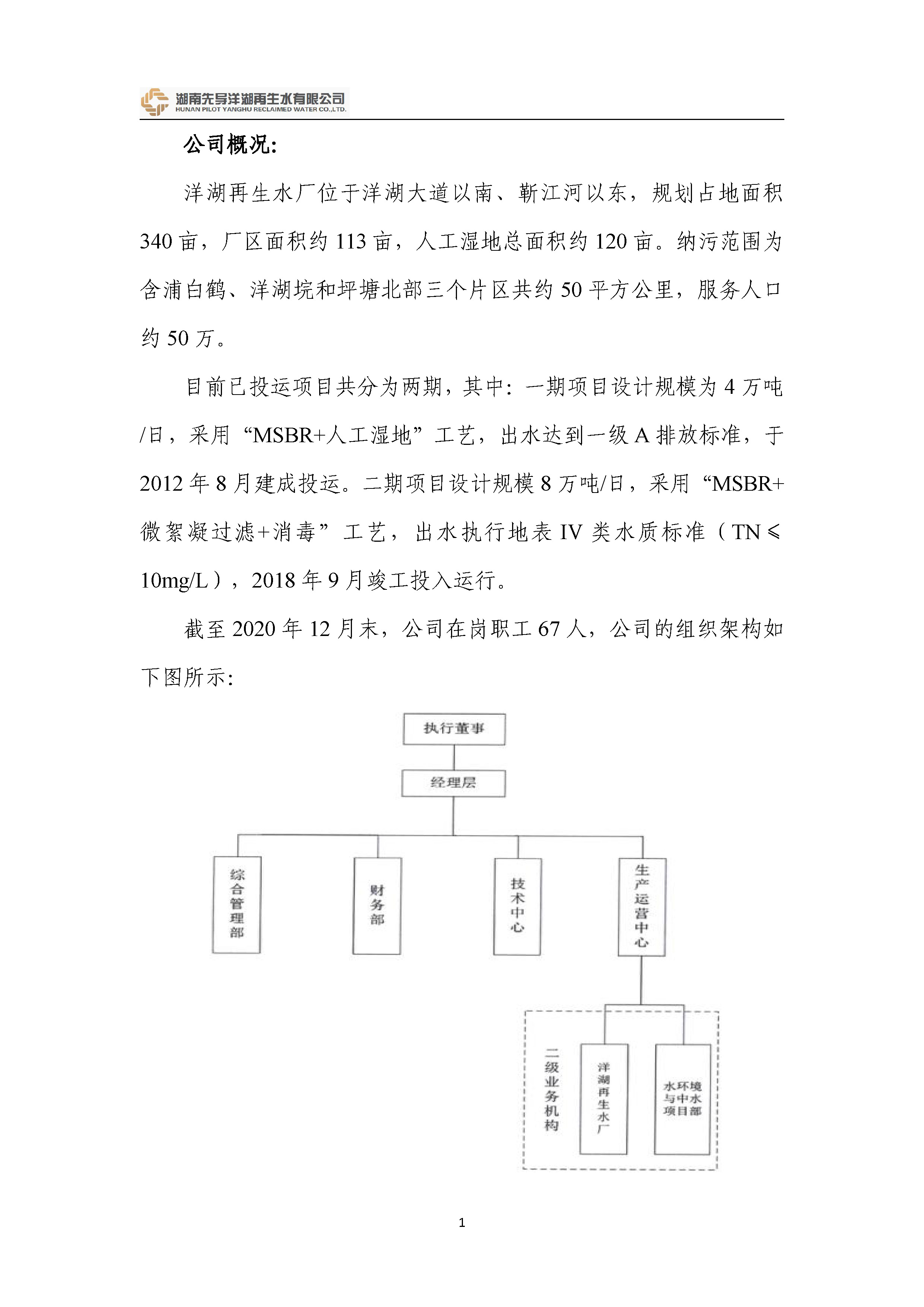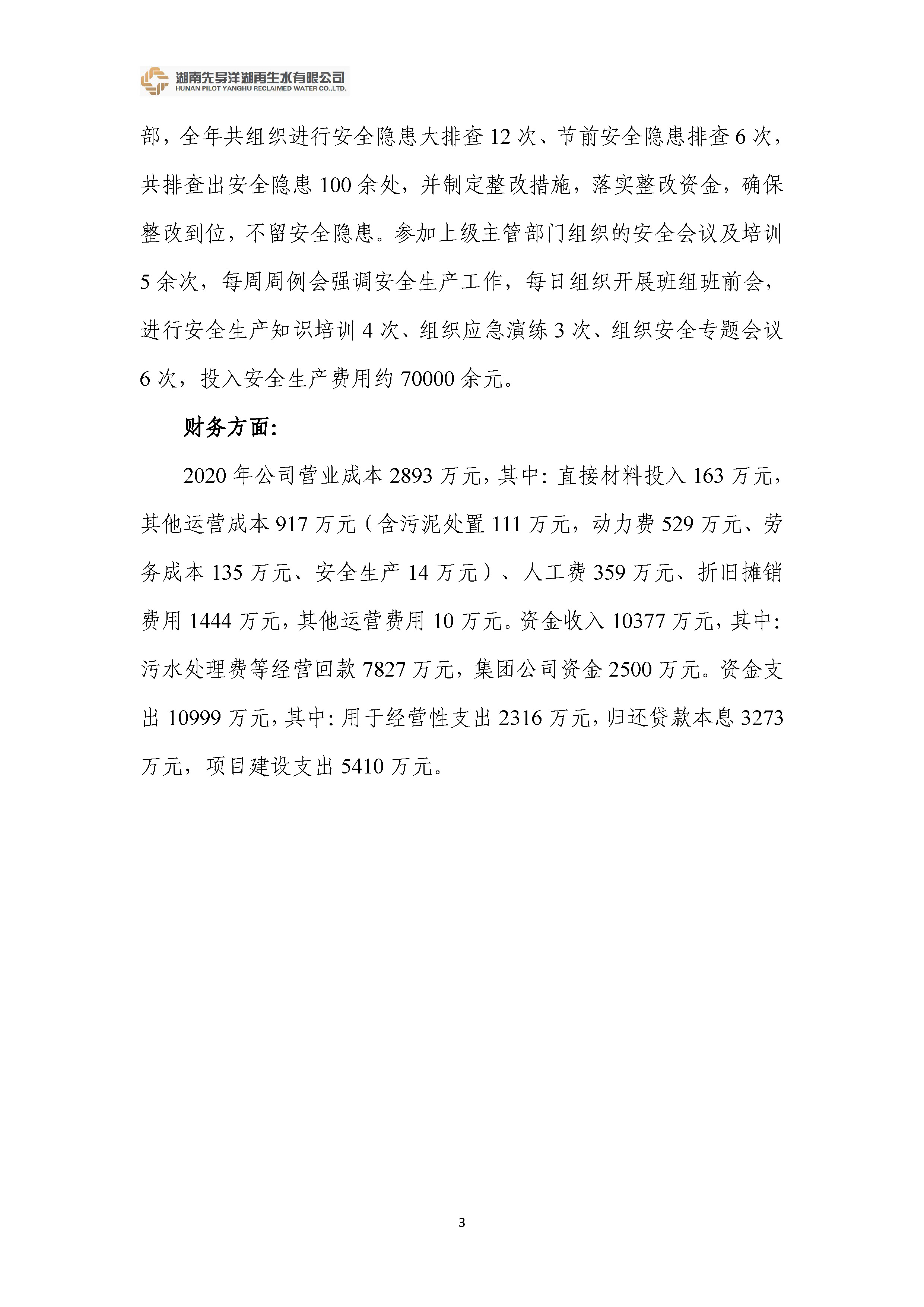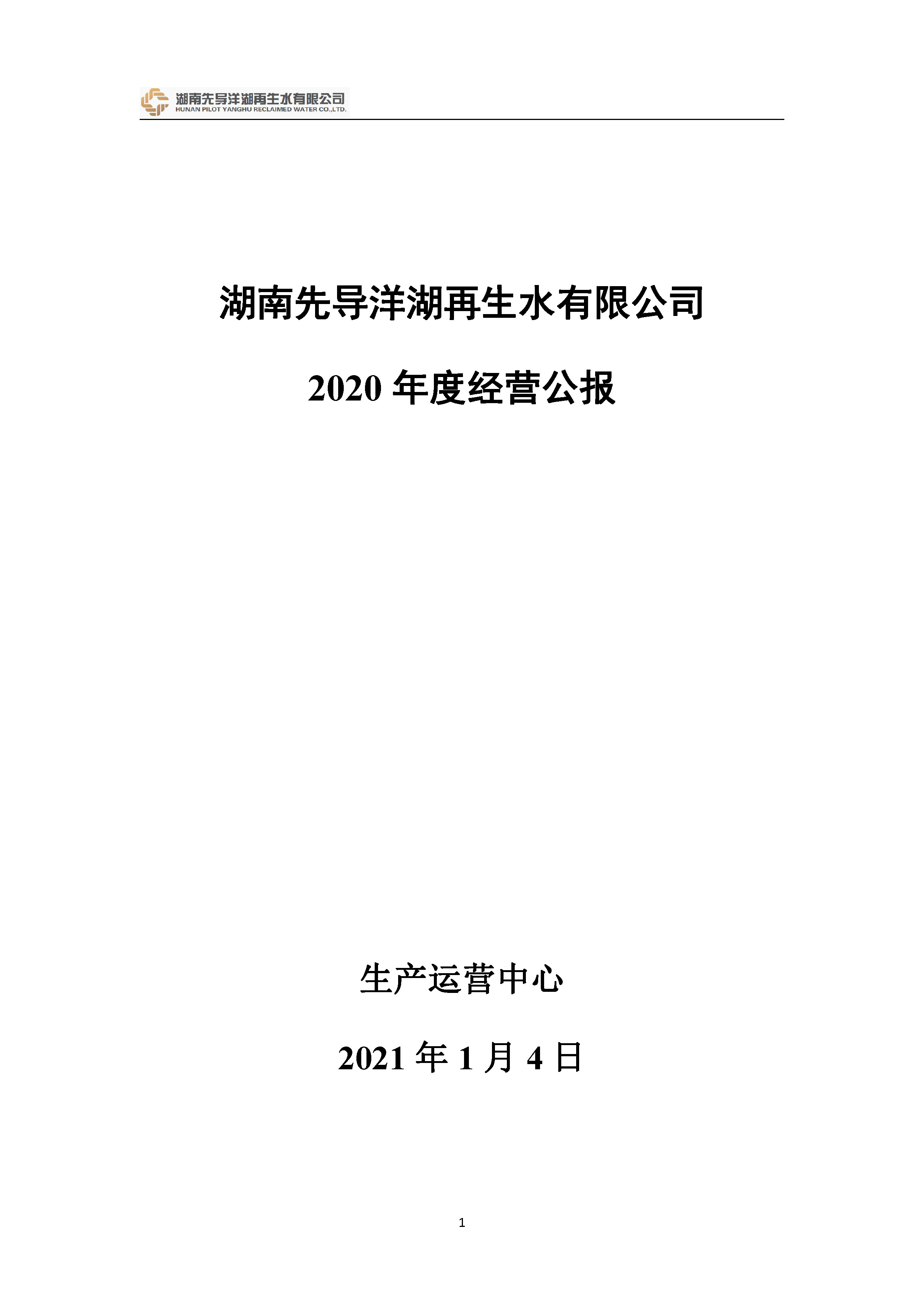 湖南先導(dǎo)洋湖再生水有限公司 2020年度經(jīng)營公報(bào)